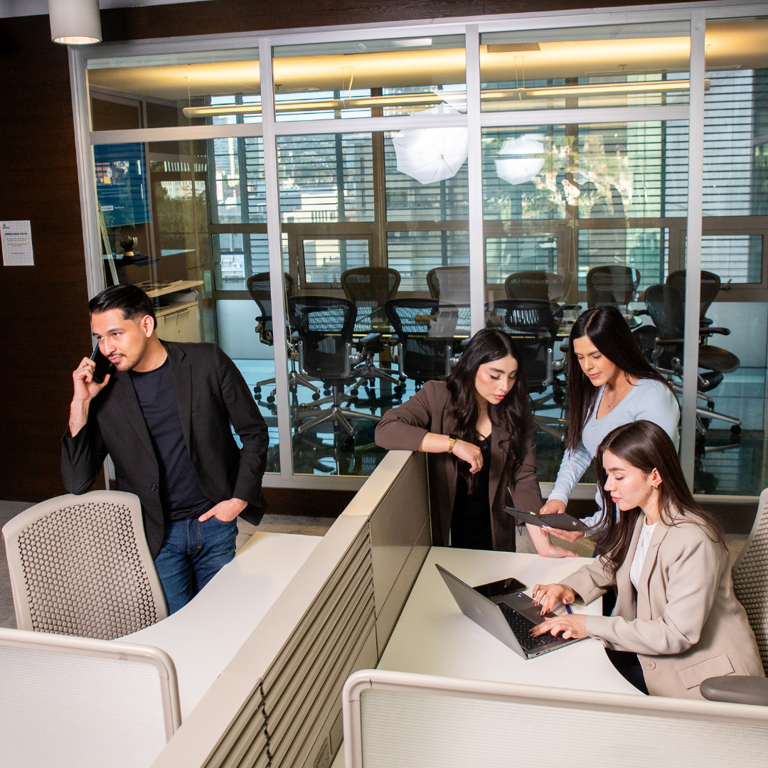 Espacios de trabajo en áreas comunes con acceso flexible por día, mes o si lo prefieres ilimitado.